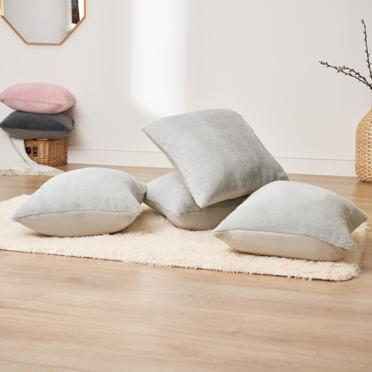 This luxurious plush faux rabbit fur cushion cover from the OHS Home Collection would look ideal in any bedroom, or living room due to its plain fluffy design and striking colours. This is a perfect way to give your room a fresh, modern look, with its versatile colours, and hidden zipper. Made from soft touch faux rabbit fur polyester on the front and coral fleece reverse means they are soft, comfortable and durable, whilst being reversible. The cushion covers allow for an instant sophisticated look and once washed it has great resistance to wrinkles, fading and shrinkage. This item includes 4 matching cushion covers, and will be perfect to add a decorative look on your sofa or to accessorize and scatter across your bed.