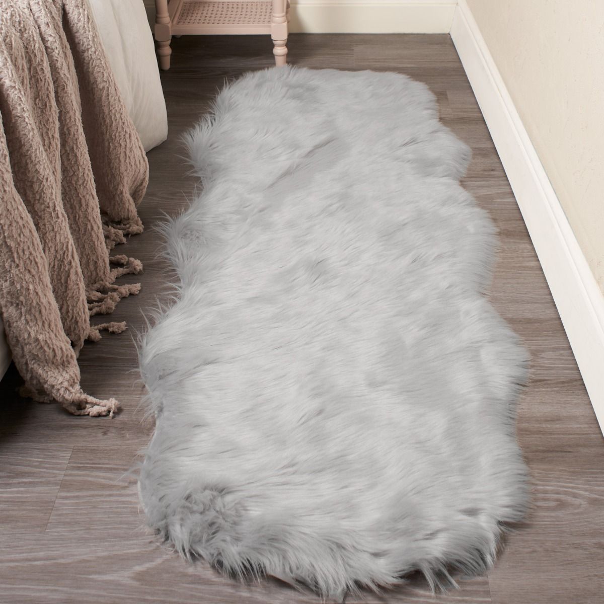 OHS Faux Fur Sheepskin Rug Runner, Silver - 60 x 180cm