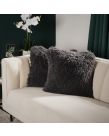 OHS Luxury Faux Mongolian Fur Cushion Covers - Charcoal
