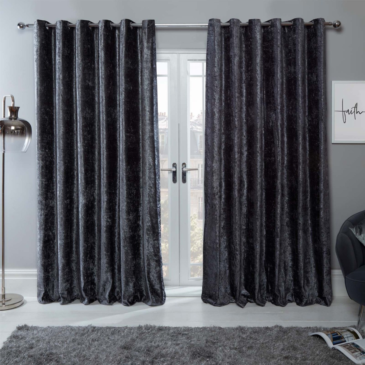 OHS Crushed Velvet Eyelet Curtains - Charcoal Grey 66" x 54"
