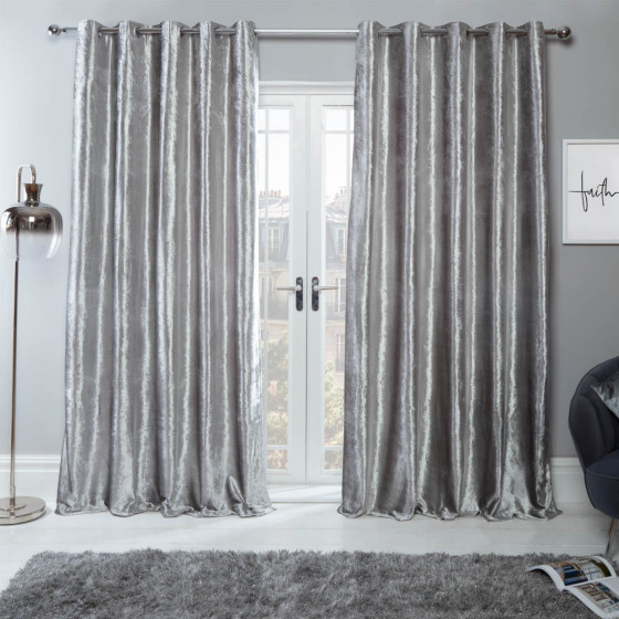 OHS Crushed Velvet Eyelet Curtains - Silver 46" x 72"
