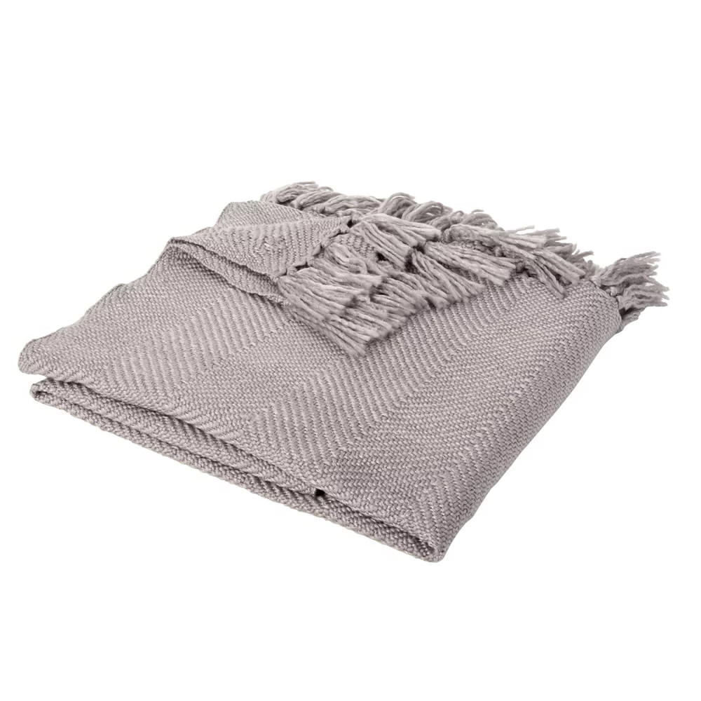 OHS Large Shimmer Knit Tassel Throw, Grey - 150 x 180cm