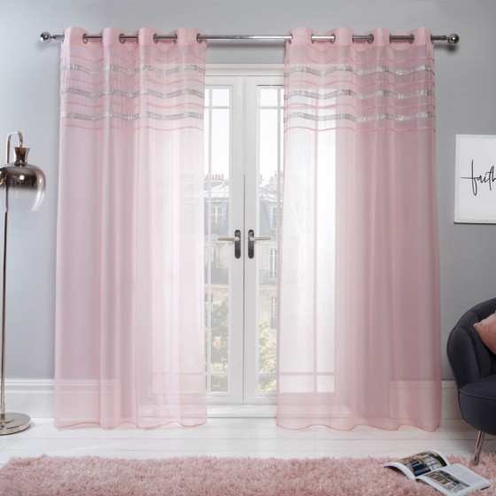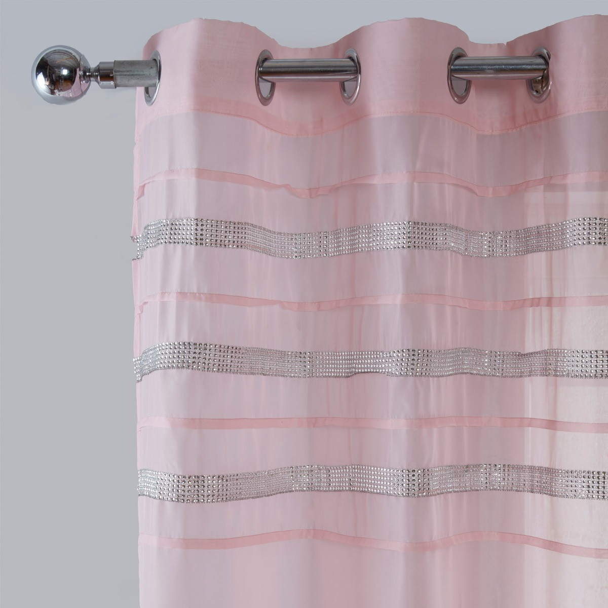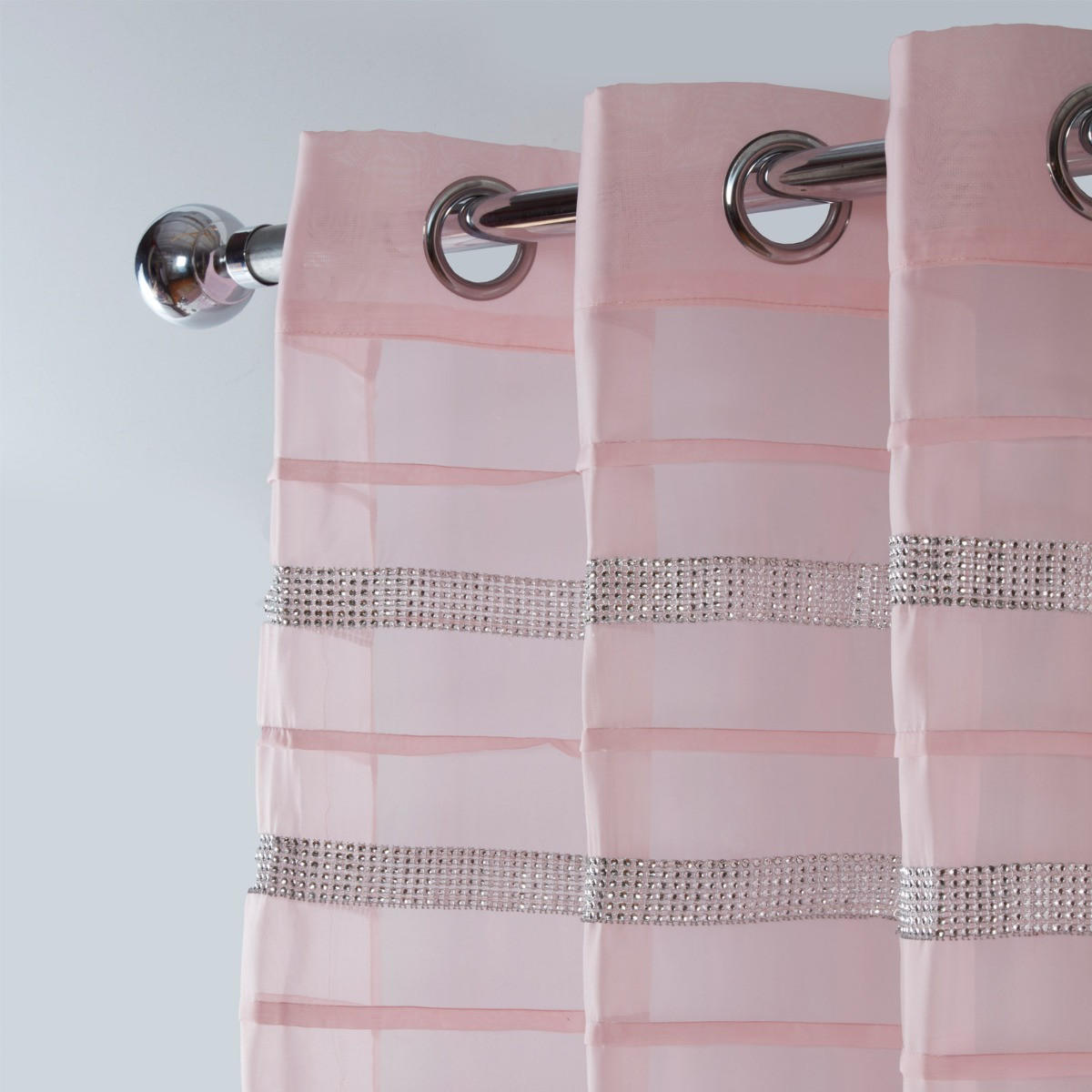 OHS Latina Diamante Voile Net Curtains Eyelet, Blush Pink - 55" x 87"