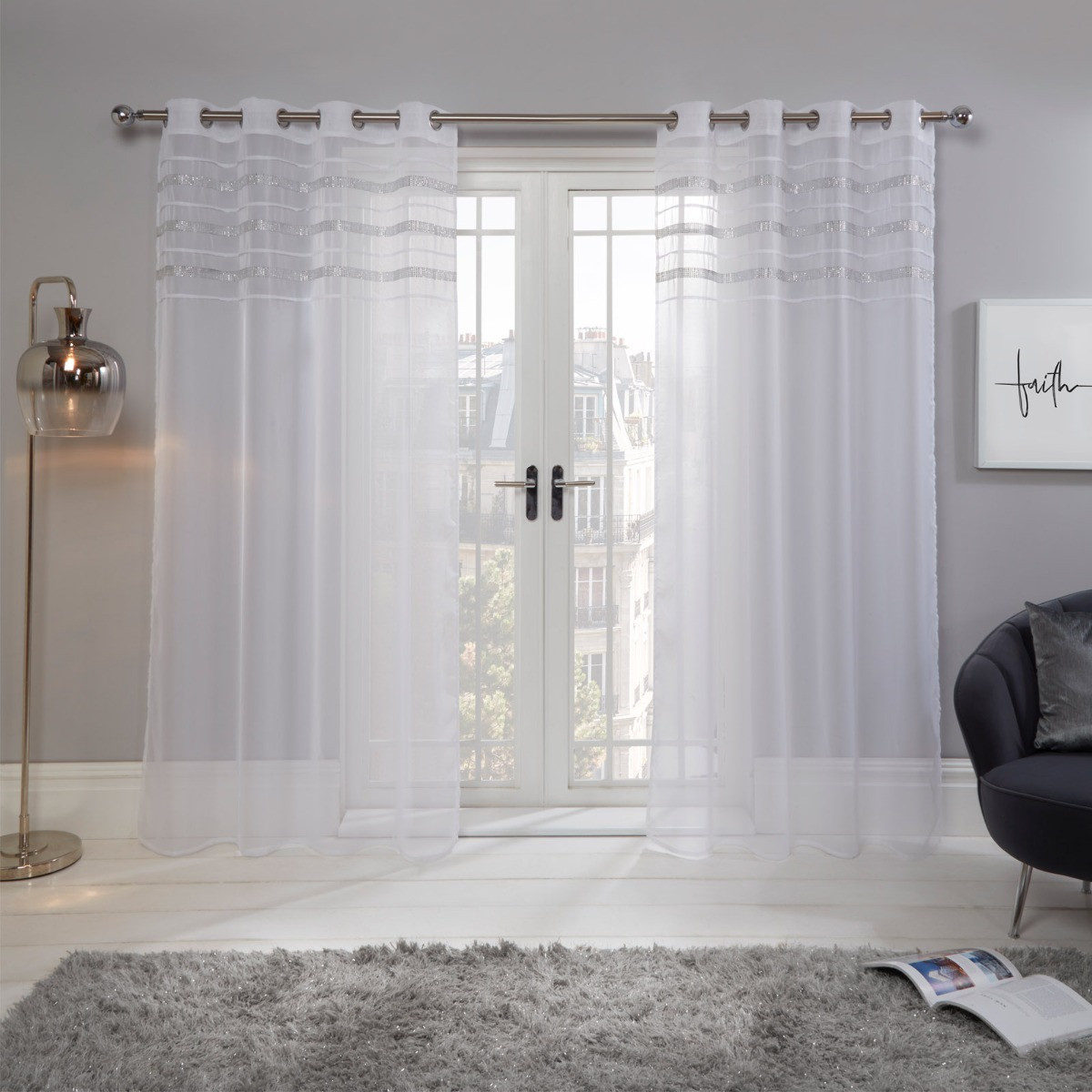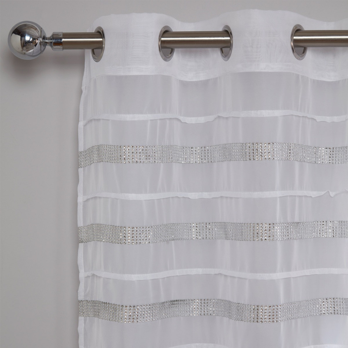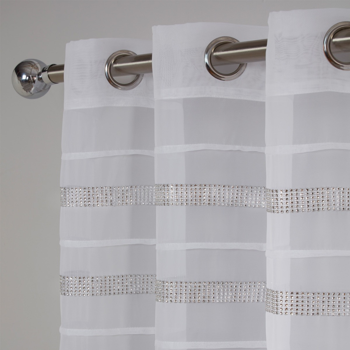 OHS Latina Diamante Voile Net Eyelet Curtains, White - 55" x 87"