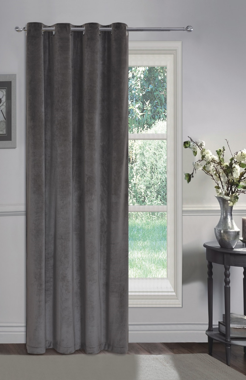 OHS Matt Velvet Eyelet Single Door Curtain Panel, Charcoal Grey - 54" x 86"