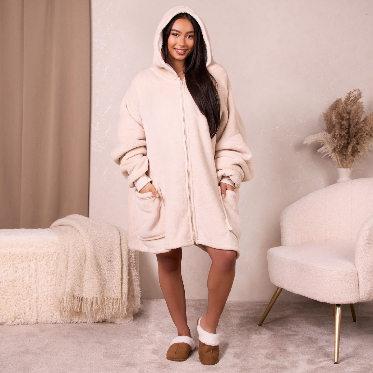 OHS Sherpa Zip Up Hoodie Blanket, Adults - Natural