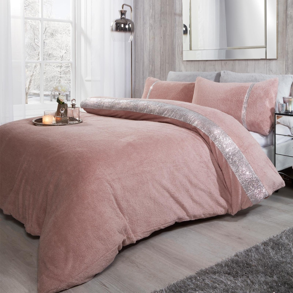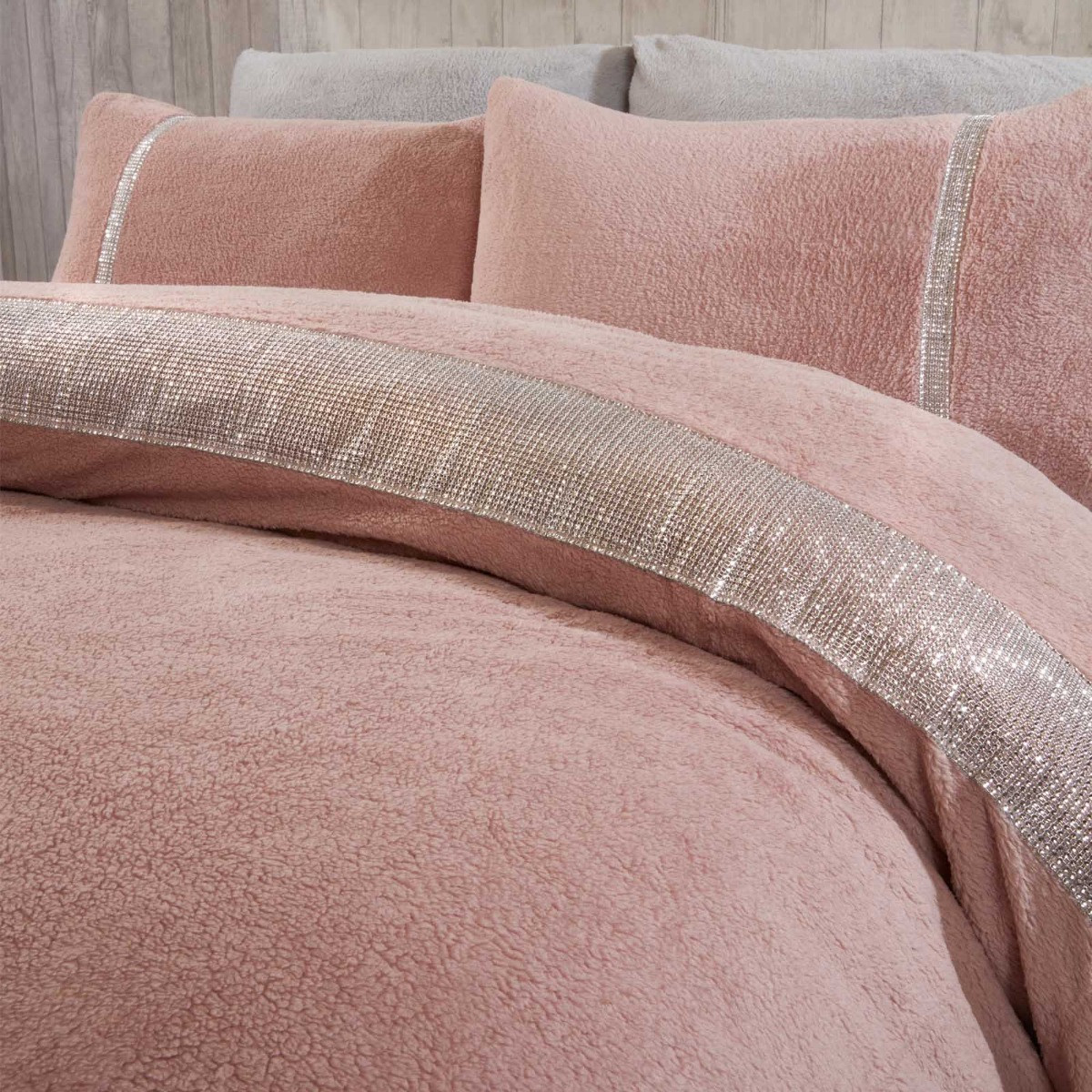 OHS Teddy Diamante Duvet Cover Set, Blush Pink - Single