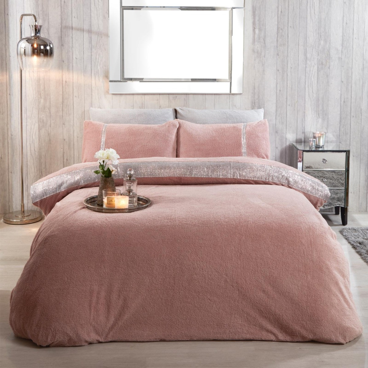OHS Teddy Diamante Duvet Cover Set, Blush Pink - Super King