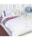 This personalised duvet cover set featuress embroidered butterfly print and name, this will add a personal touch to your bedroom. Comes with matching embellished detail pillowcases . This duvet set is made from polycotton making it soft, comfortable and durable.