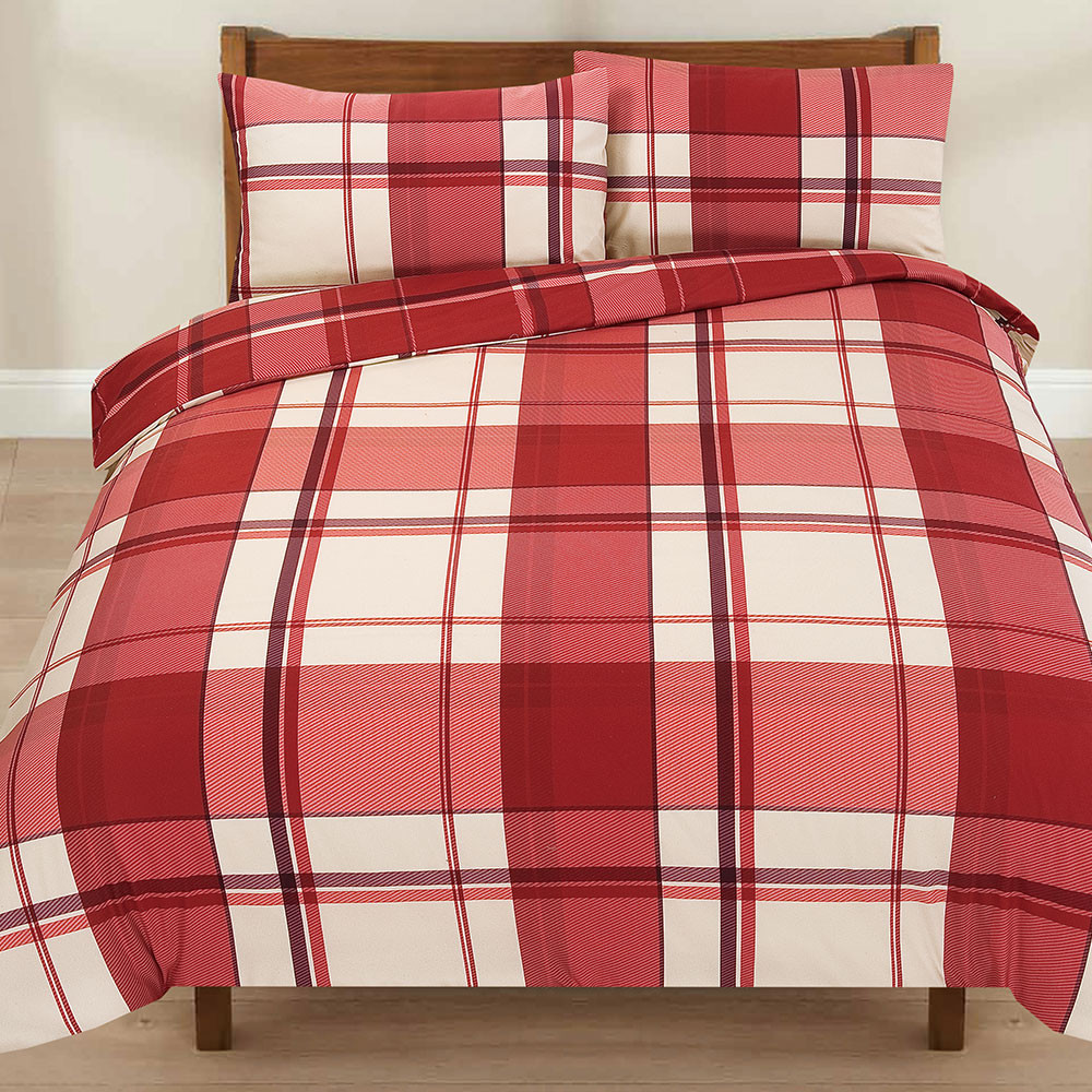 Thermal Duvet Cover With Pillow Case Red Check Tartan Brushed Fleece King Size