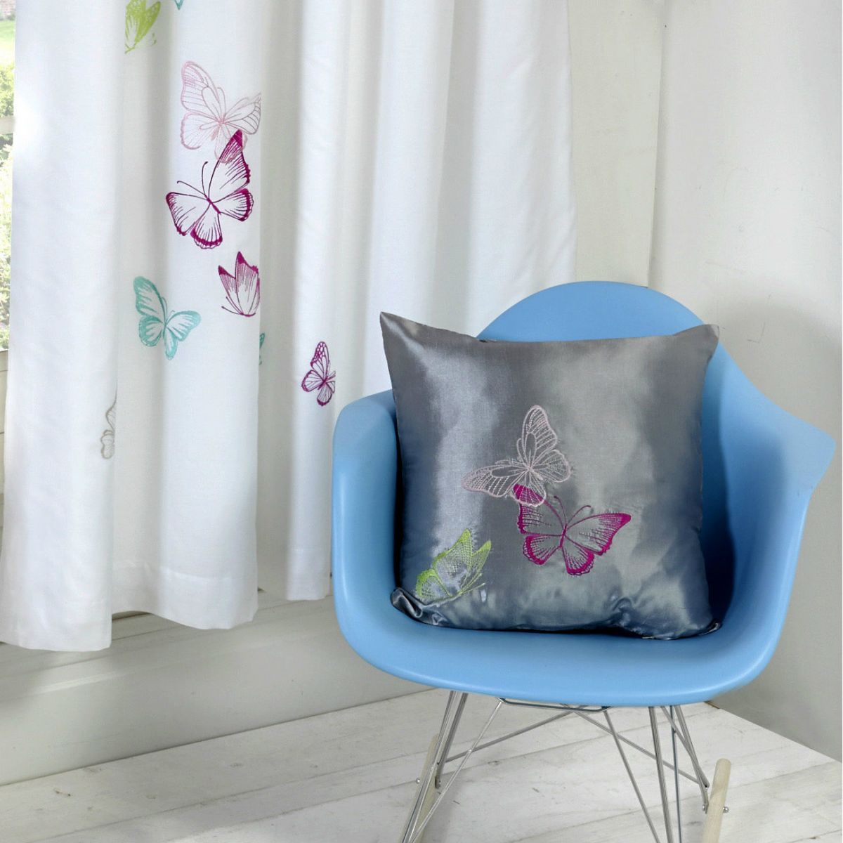 Tobias Baker Square Butterflies Filled Cushion Grey - 45 x 45 cm