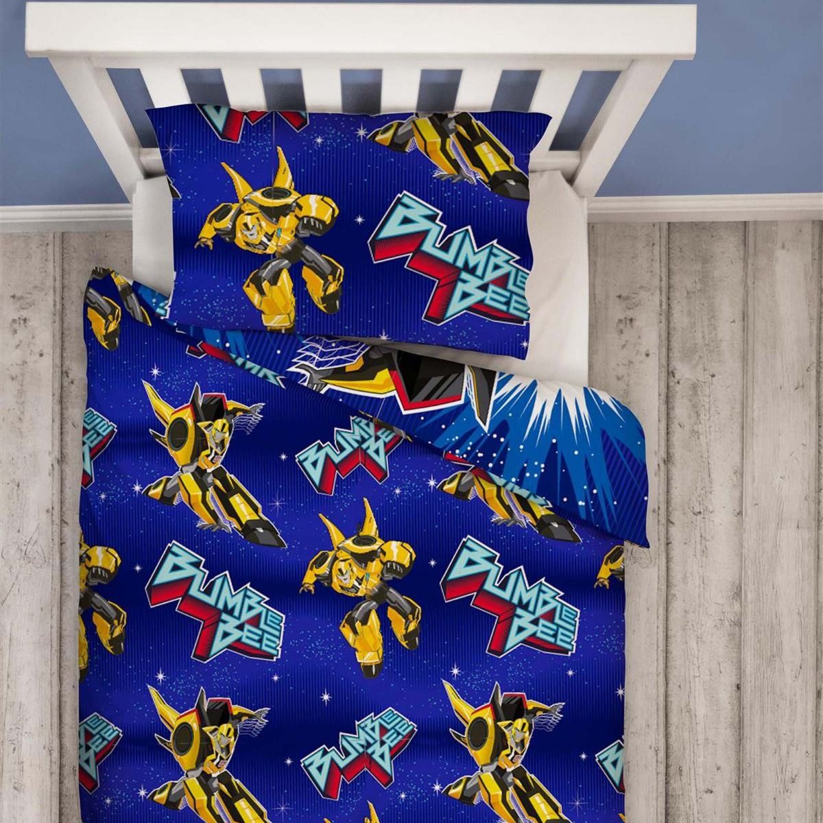 This Transformers single duvet set is perfect for the Transformers fan in your life. Featuring your favourite Bumblebee Transformer, this single duvet set will transform your kids bedroom, and make bedtime a fun adventure.