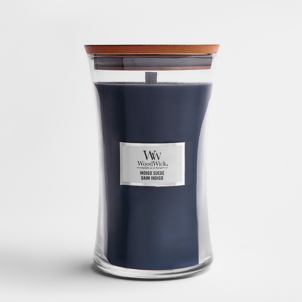 Woodwick Indigo Suede Large Hourglass Jar - Navy