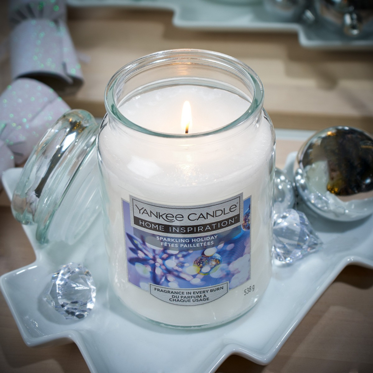 Experience the enchantment of Yankee Candle Sparkling Christmas, evoking warm citrus, spices, and festive joy in a stunning glass jar. Embrace the magic! Selected ingredients and high-quality wax guarantee a clear and constant aroma that fills the whole room.